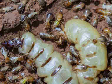 白蚁的最主要食物是纤维素,也就是常见的木材,植物等,但它们在进食后,会分泌一种很强的有机酸——蚁酸。有了蚁酸,它们就能腐蚀钢筋水泥,损坏建筑物,所以绝大多数的建筑物都怕白蚁。